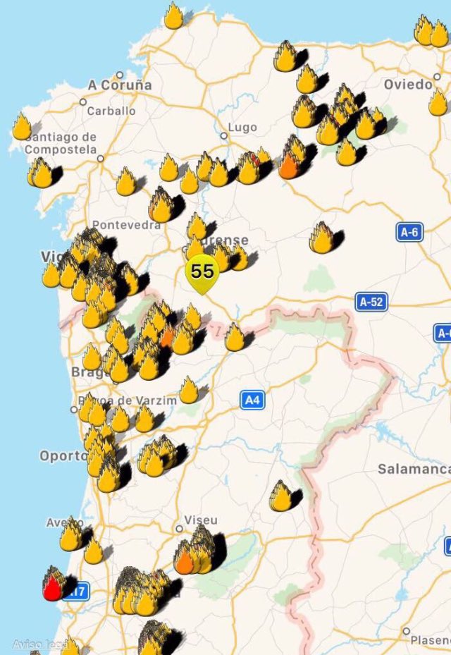 De bosbranden in Portugal woedden sinds zondag. In grote delen van het land was een noodtoestand afgekondigd. Op een website van de hulpdiensten valt te zien dat van de 59 branden er nu 50 zijn gedoofd. Van de negen overgebleven branden lijken er zes onder controle. Twee mensen zijn opgepakt op verdenking van brandstichting.
