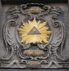 Het symbool van het Alziend Oog slaat op de eeuwigdurende, altijd aanwezige Godheid. Dat het symbool eveneens wordt en werd gebruikt door andere groeperingen, waaronder Vrijmetselaars (die er trouwens eveneens het Alziend Oog van God in waarnemen) doet niets af aan het feit dat binnen de katholieke symboliek dit een puur christelijk symbool is. | |
