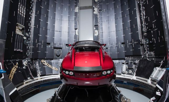 En grap of niet, zoals eerder werd gedacht: tijdens de testvlucht zal de Falcon Heavy inderdaad een speciale vracht aan boord hebben. De rode Tesla Roadster van Musk bevindt zich in het laadruim van de raket, dat is te zien op foto's die Space X eind 2017 op Twitter gooide. De elektrische sportwagen zal dus echt in een baan om de zon worden gebracht waar het dan honderden, misschien zelfs duizenden jaren zal rondzweven.