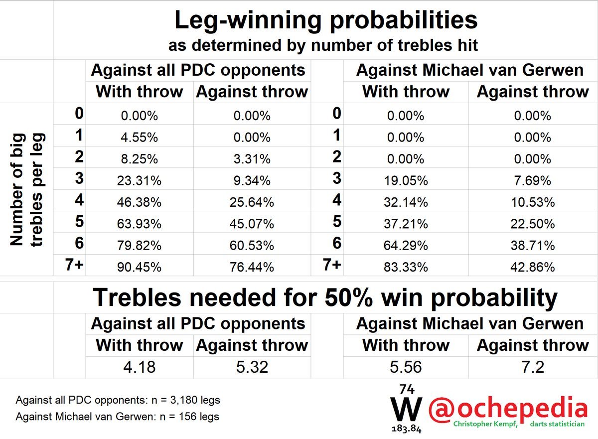 Dus zelfs als je 5 legs achter elkaar 7 triples gooit mag je nog steeds verwachten dat MvG er eentje wint