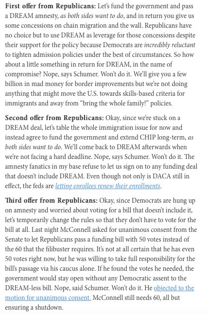 Dat is dus precies wat Schumer vannacht tegen de Republikeinen zei in de Senaatquote:Op vrijdag 19 januari 2018 21:31 schreef Nintex het volgende: