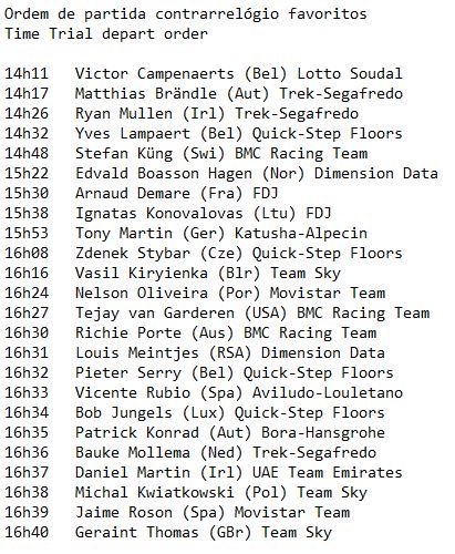 Meintjes TT favoriet.twitter:VAlgarve2018 twitterde op vrijdag 16-02-2018 om 14:58:43Ordem de partida dos favoritos / TT favourites start order#valgarve2018 https://t.co/cgkZfnsQPc reageer retweet