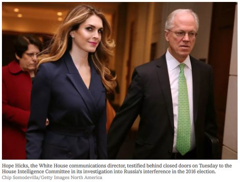 Scoop van NYT: Hope Hicks stapt op als communication director en verlaat het Witte Huis.