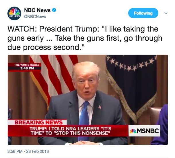 who’s excited to ask Republican senators if they agree with the Republican president that law enforcement should confiscate guns without regard for due process???