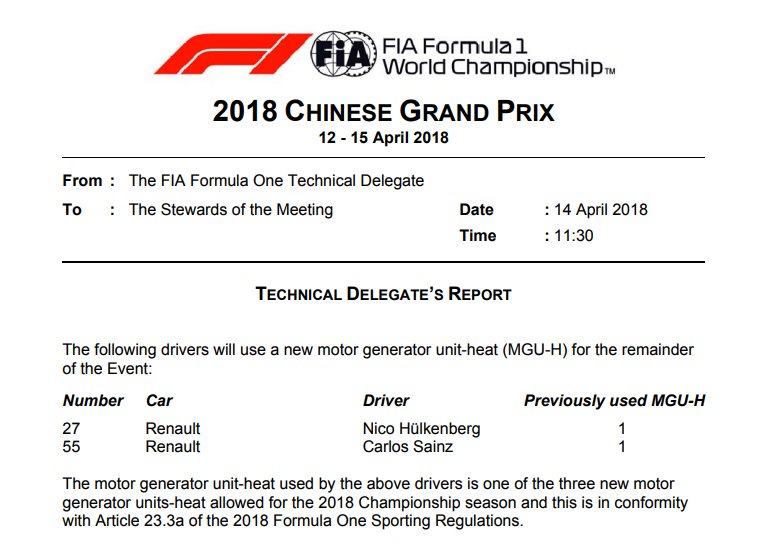 Maar had elke Renault niet allemaal nog een oude (niet geuptdatet) MGU-H.quote:Op zaterdag 14 april 2018 08:08 schreef Tinos85 het volgende: