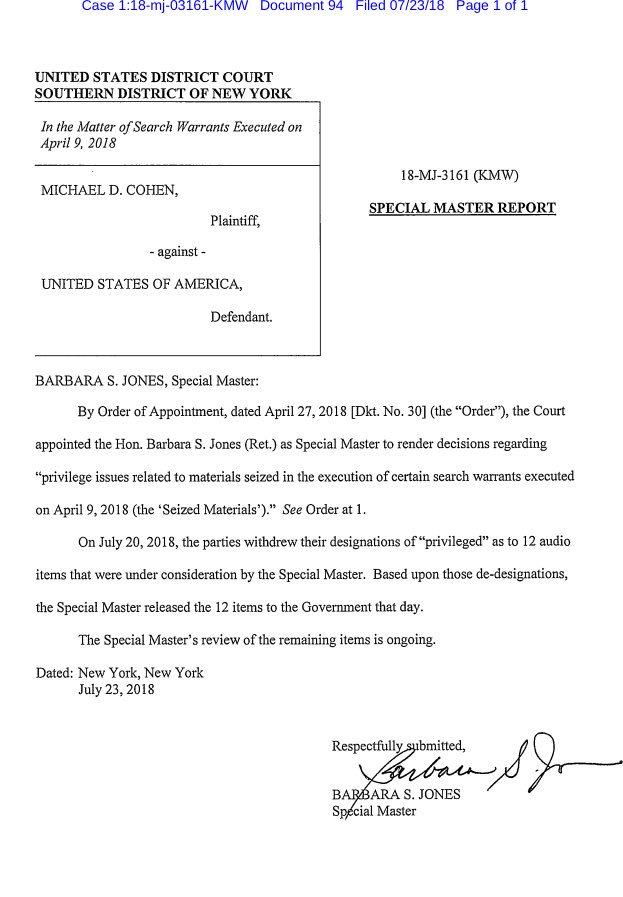 twitter:KlasfeldReports twitterde op maandag 23-07-2018 om 20:42:05BREAKING: There isn’t just one audio file in the Michael Cohen matter.There are at least 12, and prosecutors got them on Friday - when the Times story ran on one of them. [ afbeelding ] reageer retweet
