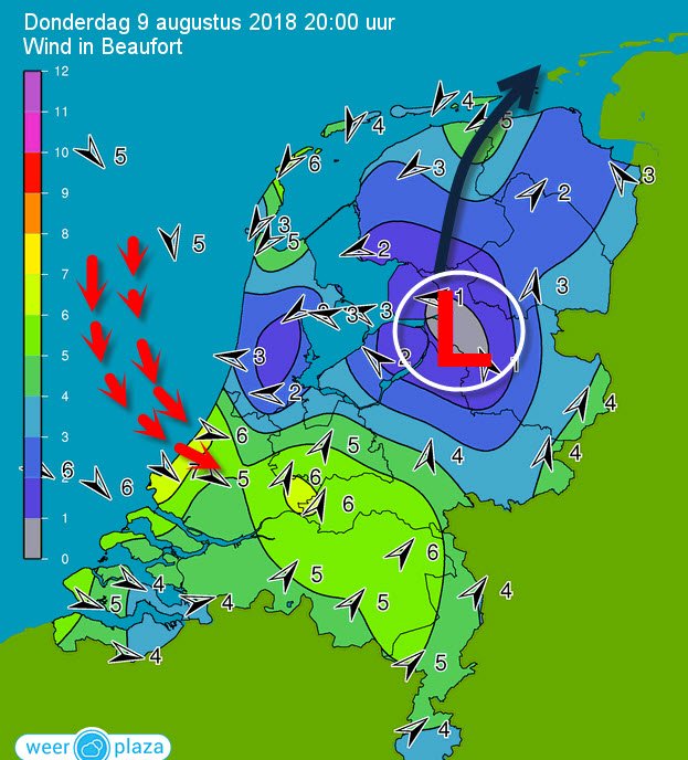 Volgens mij is de meeste wind in het westen en later het noorden.quote:Op donderdag 9 augustus 2018 20:40 schreef _UserName_ het volgende: