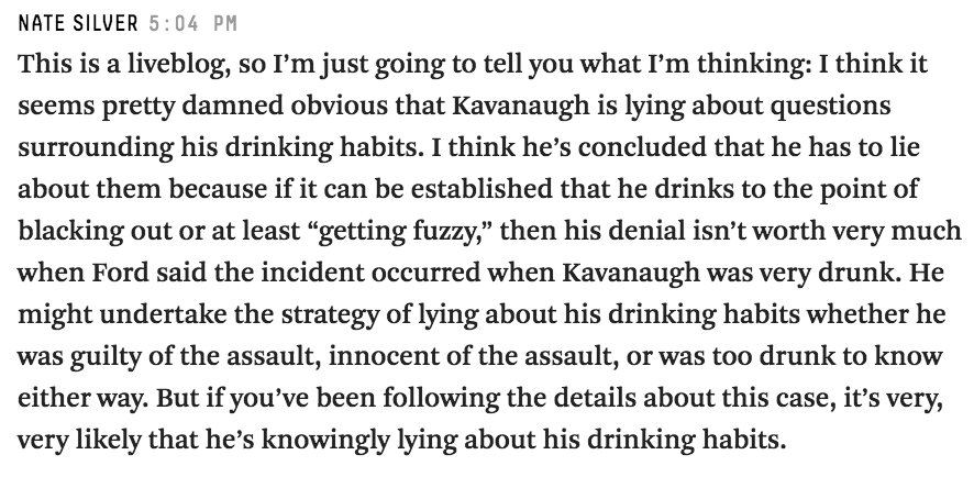 twitter:ThePlumLineGS twitterde op donderdag 27-09-2018 om 23:04:53The big news out of Kavanaugh's appearance is that he has repeatedly confirmed that he does not want the person who Christine Ford claims was his accomplice in his sexual assault to face serious questioning in any forum. reageer retweet