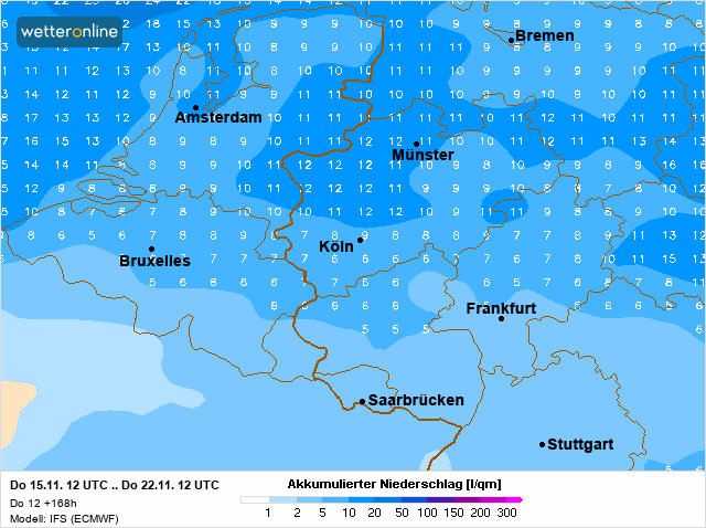 Zie temperaturen in de pluim. Hoogste gaat naar de 15 graden.