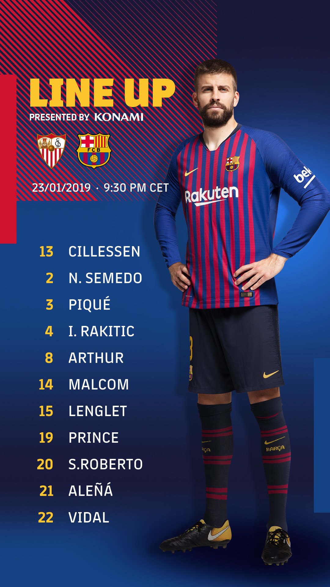 Cillessen; Semedo, Lenglet, Murillo, Alba; Vidal, Arthur, Rakitic, Ous, Messi, Coutinho