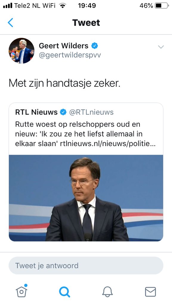 [..]twitter:geertwilderspvv twitterde op vrijdag 11-01-2019 om 17:56:29Met zijn handtasje zeker. https://t.co/g8PCzdX0rA reageer retweet