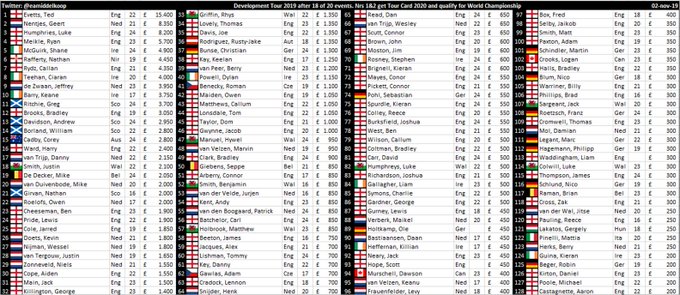 [..]Prima.twitter:jetze_jan twitterde op zondag 03-11-2019 om 17:34:05QUALIFIED | 🇮🇪 A brilliant week for Ciaran Teehan, who has secured an Ally Pally debut today after already reaching the quarter finals of the World Masters last week. A Tour Card looks a certainty as well. https://t.co/iV1tPb3kZU reageer retweet