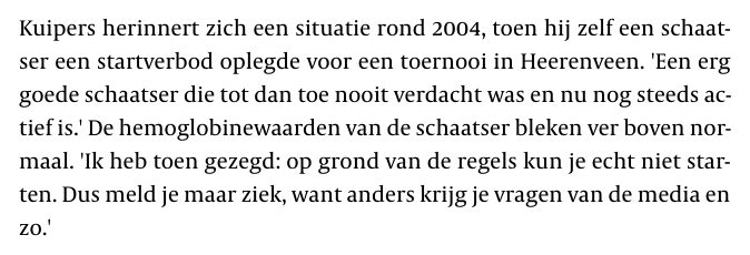 twitter:thijszonneveld twitterde op vrijdag 08-03-2019 om 08:54:59In de serie rare, rare interviews over doping in het schaatsen: vandaag spreekt Harm Kuipers - hoofd van de medische commissie van de ISU - over het onderwerp doping in de Volkskrant. Ik pik er een paar dingen uit: reageer retweet
