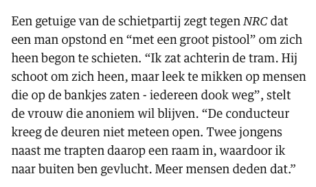 Ja schieten in een tram is natuurlijk heel normaal.quote:Op maandag 18 maart 2019 12:10 schreef speknek het volgende: