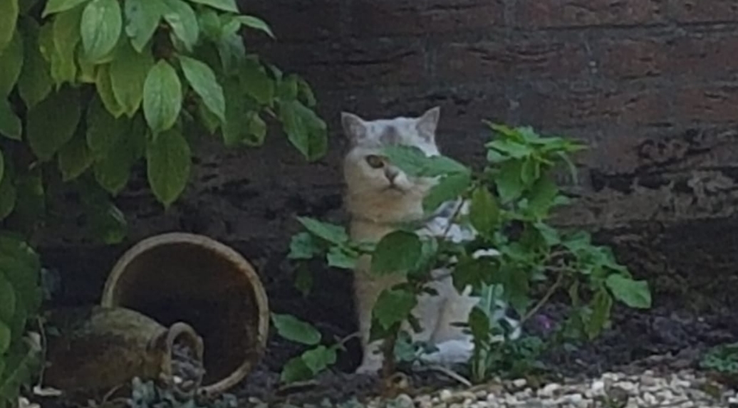Lekker dan kat, camera op de achtertuin, gaat die klojo achter een boom zitten