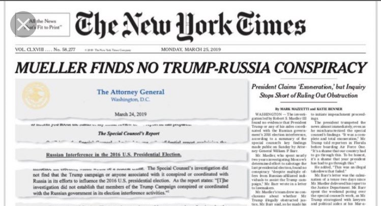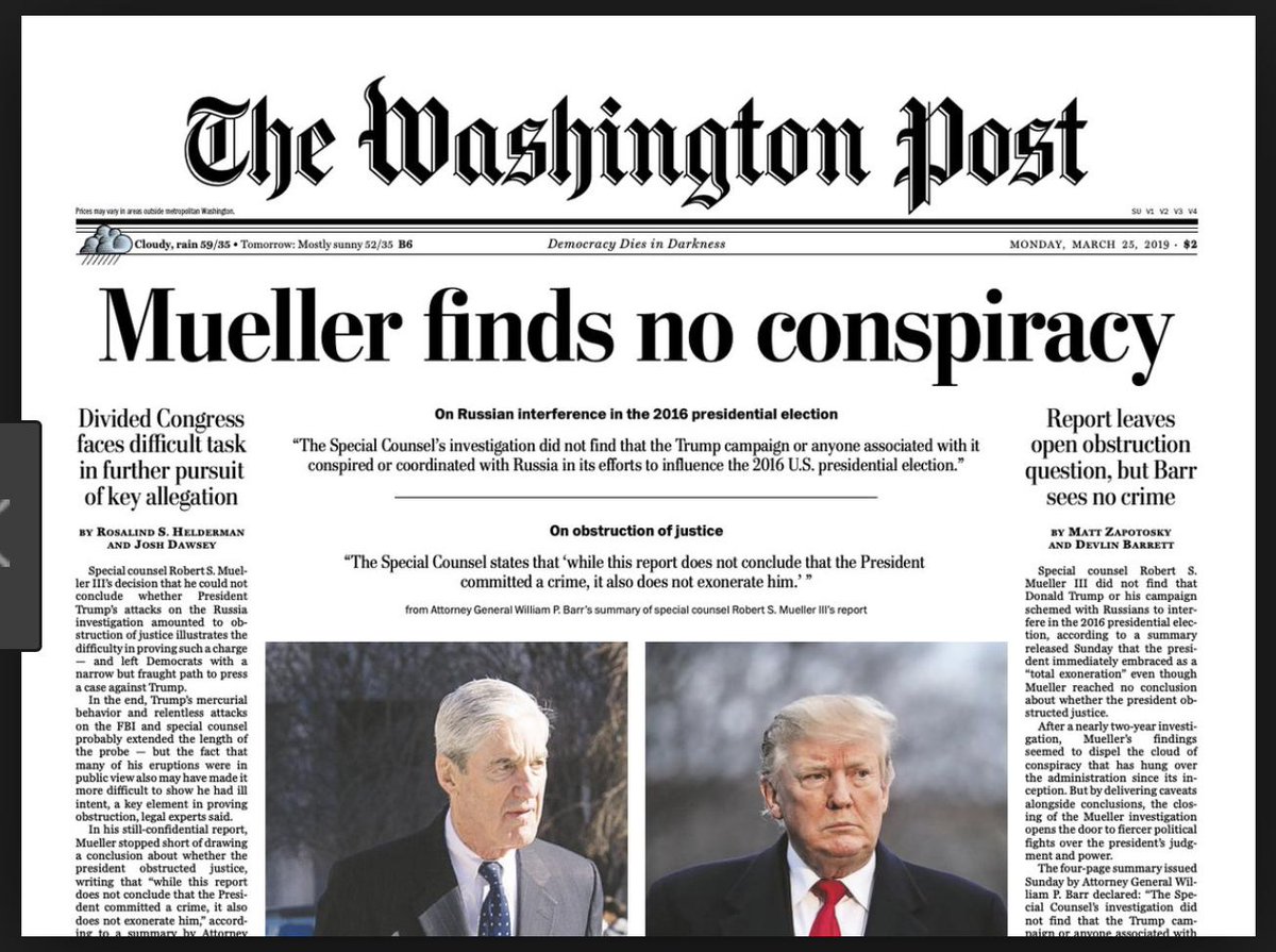 Feit blijft overeind staan dat het Muller rapport Trump heeft vrij gesproken van enige samenwerking met de Russen. De hoofdreden dat dit onderzoek werd ingesteld.