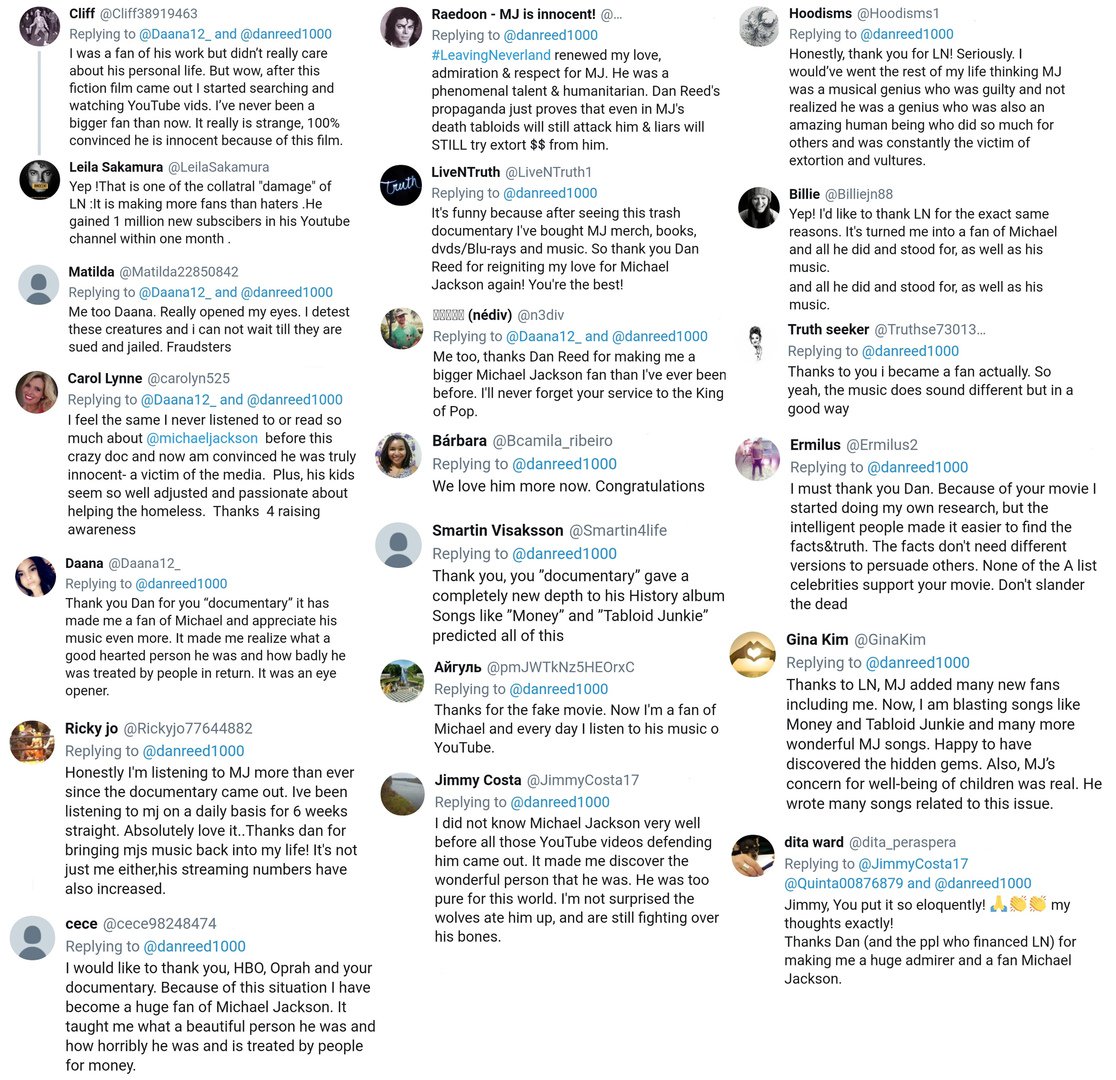Hoe groot is de kans dat zij onafhankelijk van elkaar allemaal liegen? Dat Michael Jackson er door hen ingeluisd werd? En waarom overkwam dat andere celebraties niet?Iedereen mag zijn zegje doen. Maar het is natuurlijk ook zo dat slachtoffers van seksueel misbruik het recht hebben om hun kant van het verhaal te vertellen.quote:Stel iemand maakt een film met beschuldigingen over een overleden naaste van jou. Zou je het dan ook onnodig vinden dat de mening van 'de andere kant' op zijn minst wordt gepeild? Zou je niet de behoefte voelen om je zegje te kunnen doen?Vandaar ook dat 'non-entity'?quote:Die had hij al met Macauly Culkin en Brett Barnes. Safechuck was helemaal niet nodig. Er was geen enkele getuige of verklaring in de rechtszaak die beweerde dat Safechuck was misbruikt. Vandaar ook dat 'non-entity'.