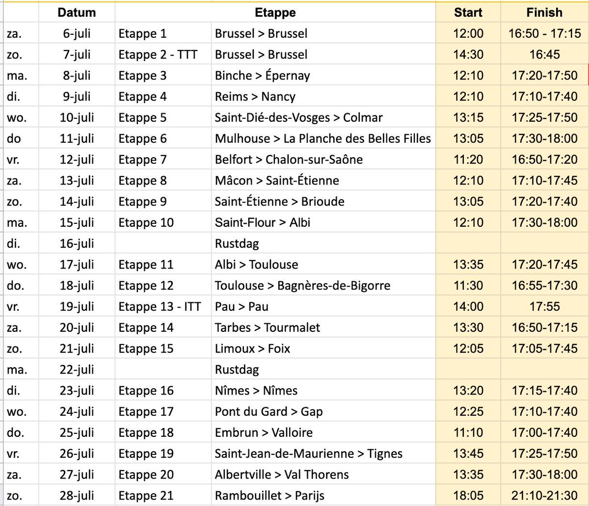Voor de mensen, zoals ook ondergetekende, die een werkrooster dienen te maken en deze willen afstemmen op de Tour: