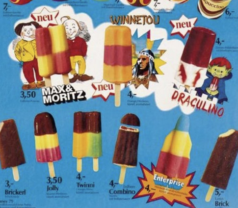 stell je vor bij elke Badbezoek als ik Kind was heb ik 2 - 3 IJS gegeten darvan en Nogger of Brickerl,en Calippo en misschien nog en kleine Bekker