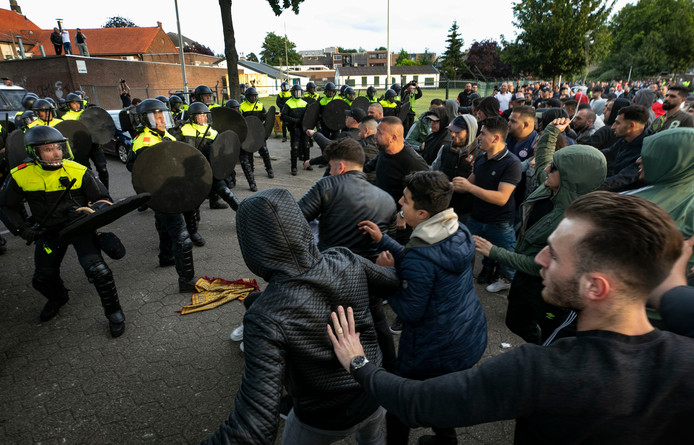 Niet honderden rellende Turken nee. Maar van de honderden aanwezigen lijkt toch een aanzienlijk deel te rellen ja. | |