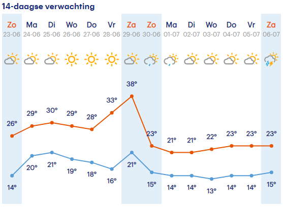 Dat hoef je nog niet serieus te nemen. Het lijkt wel flink heet te worden de komende dagen, maar niet zo gek als eerst werd verwacht.