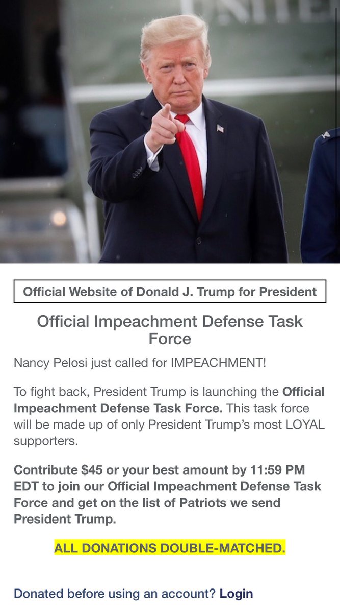 Dat gegoochel met woorden begint me te storen. Impeachment investigation/impeachment inquiry. Ze durven het niet concreet te maken lijkt het. Maakt mij niet uit hoor, maar om er dan zo'n heel circus van te maken hou ik ook niet van. | |
