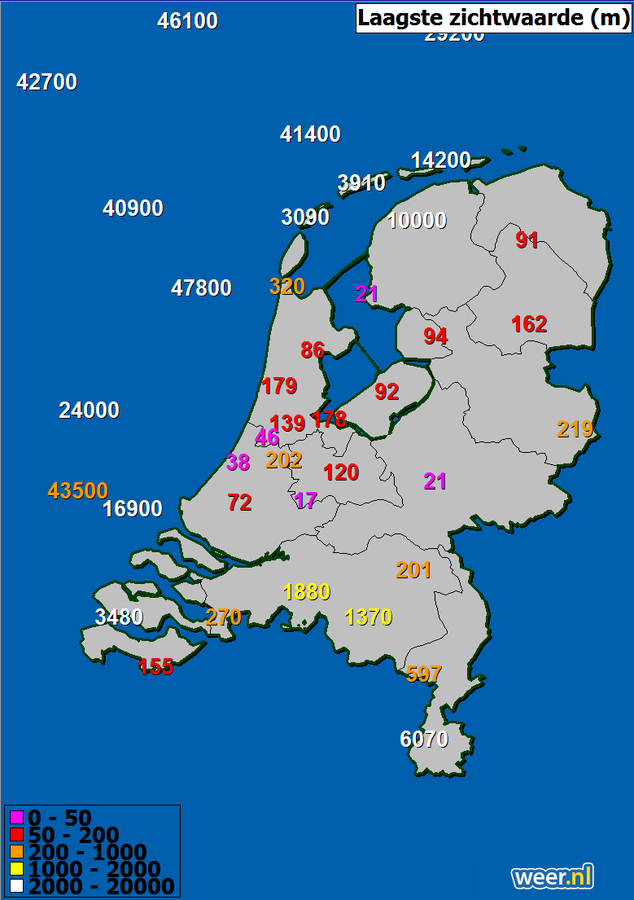 twitter:MeteoGroupWeer twitterde op woensdag 23-10-2019 om 09:26:32Het was afgelopen nacht bijzonder mistig, zo daalde het zicht in het Utrechtse Cabauw naar 17 meter!Inmiddels is de #mist overal opgetrokken en breekt in Zuid-Limburg de zon flink door.https://t.co/ltCqcHosGl https://t.co/PRlYjzi0AG reageer retweet