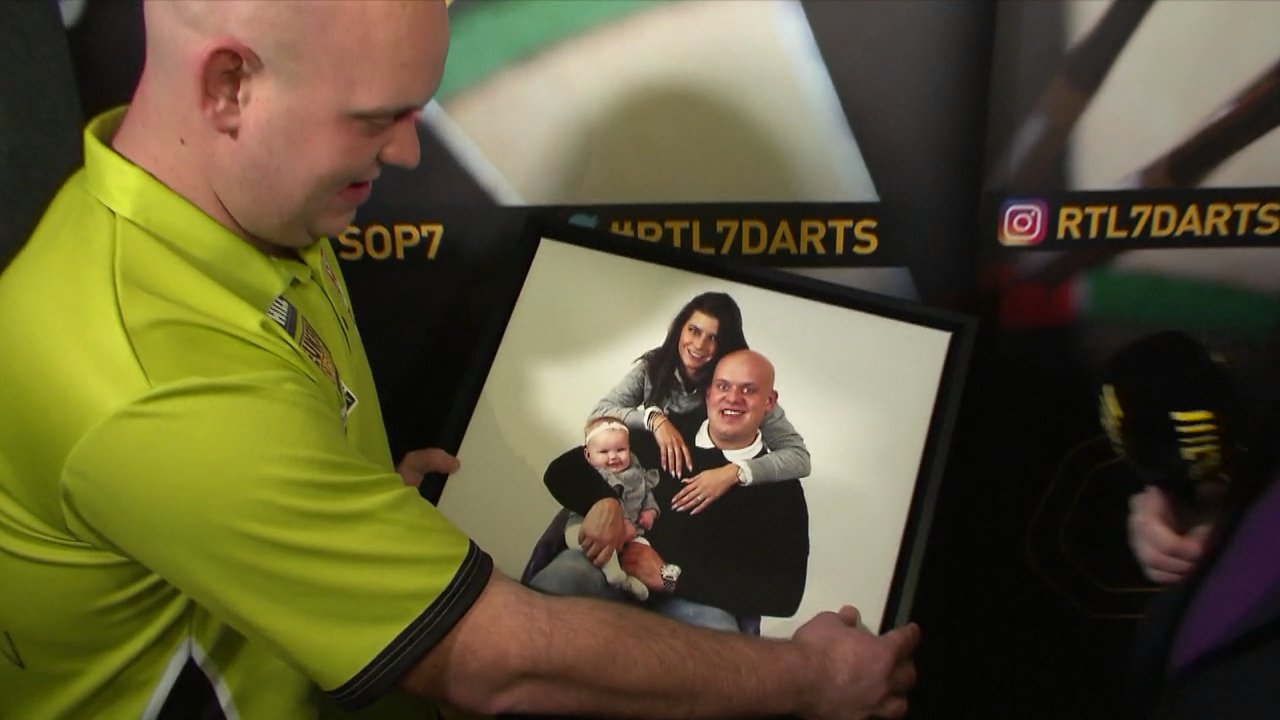 Van Gerwen heeft hetzelfde aan als op z'n familieportret.