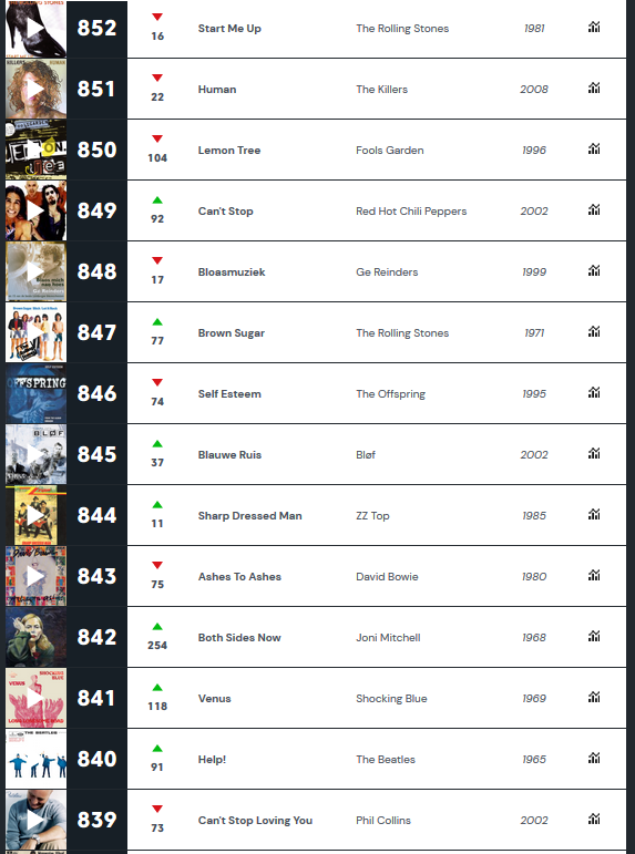 Ik ben positief verrast dat we niet met die ongetwijfelde ooraids worden geconfronteerd in de Top 2000.
