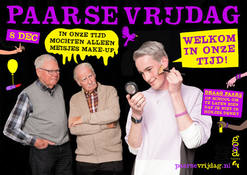 Nou nee hoor. De school komt zelfs naar leerlingen toe die geen paars aan hadden om te vragen 'of ze soms niet voor gelijkheid zijn'.