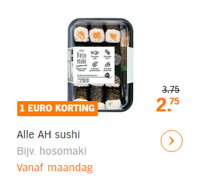 Ach, af en toe zo'n bakje sushi is wel te betalen. Het is wel een stuk minder goed dan die van de echte Japanner, maar dat vergeet ik dan even. | |