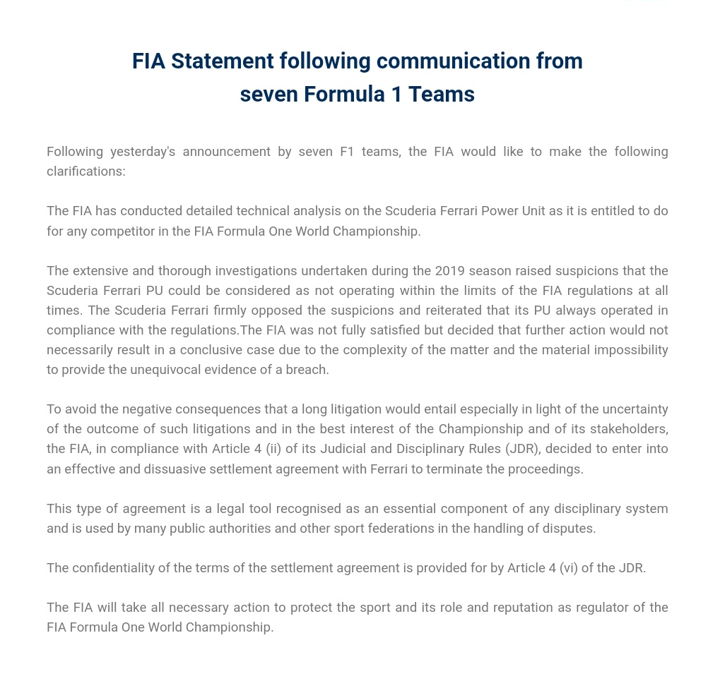 Ze kunnen waarschijnlijk niet goed repliceren wat Ferrari stiekem deed, dus ze kunnen geen keihard bewijs leveren.quote:Op donderdag 5 maart 2020 13:55 schreef WismutVeilchen83 het volgende: