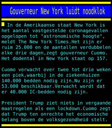 . Moet je dit eens vergelijken met de Gouverneur van NY, waar trump eerst van zei: dat hij meer moest doen (valt hem nu weer aan, dat hij beademings apparetuur in 2015 had moeten aanschaffen ofzo.)