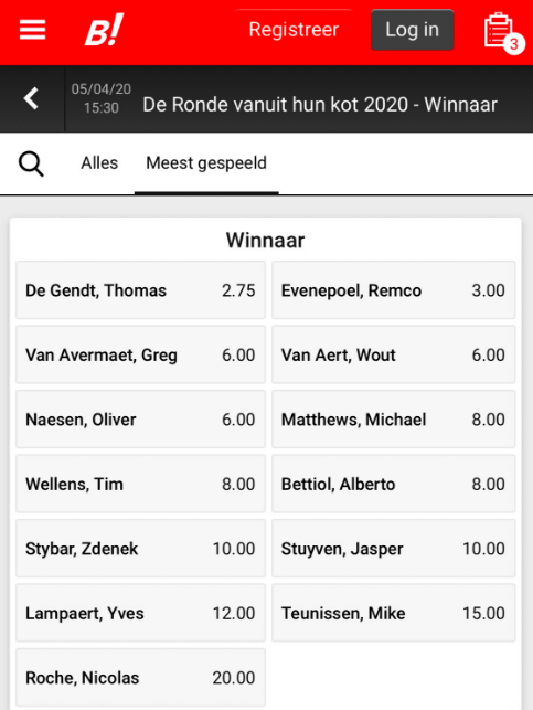 | Alles wordt uitgesteld en er is geen ruimte op de kalender. Krijgen we in juni ergens een week dat we op vrijdag de E3, zaterdag Gent Wevelgem, zondag de Hoogmis, dinsdag Parijs Roubaix, donderdag AGR, vrijdag Waalse Pijl en zondag LBL rijden | |
