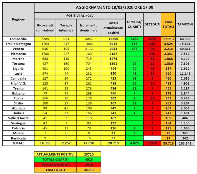 twitter:you_trend twitterde op woensdag 18-03-2020 om 18:12:22🔴 #Coronavirus, aggiornamento nazionale ore 18