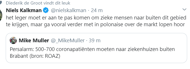 Dit ziet er ongeloofwaardig uittwitter:Dennis_Jacobs twitterde op zaterdag 21-03-2020 om 17:10:13#COVID19NL @MinPres dit zijn maatregelen! https://t.co/Na7CppaG10 reageer retweet