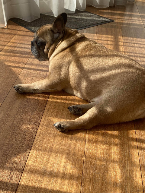Hier lag ze lekker in het zonnetje gisteren. Ik wilde weer naar buiten en heb haar tig keer geroepen. Ze keek echt heel even op met die half gesloten oogjes van...nee he...tief op met je riem....en is weer gaan slapen![]()