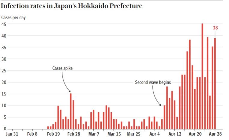 Een deel van Japan krijgt met een tweede én zwaardere golf van het coronavirus af te rekenen. Volgens experts had die vermeden kunnen worden als de maatregelen niet zo snel opgeheven zouden geweest zijn.