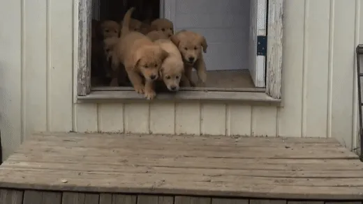 Ja hé, kijk ze ook zo met die staart heen en weer gaan en hun best doen om van die trede af te komen