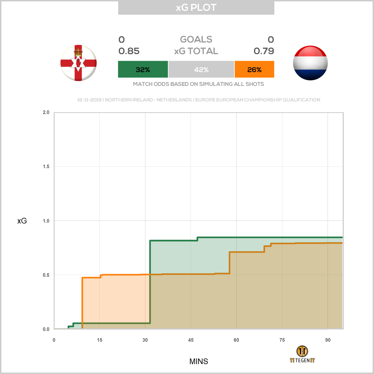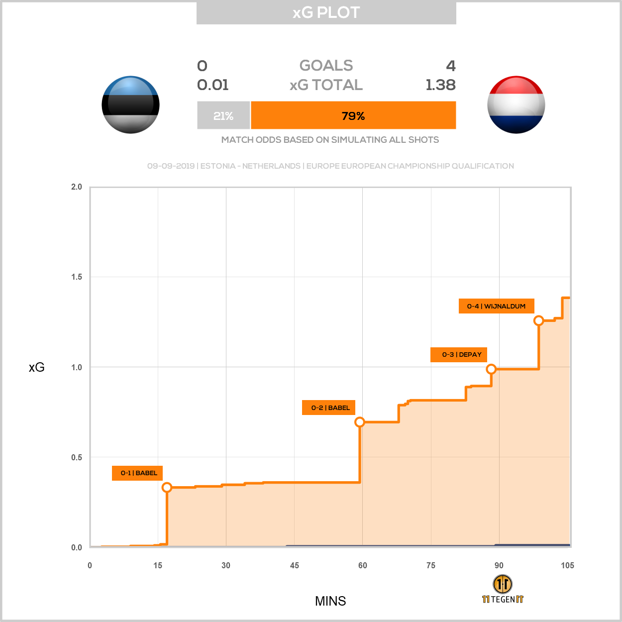 Enkele xG-plots van recente wedstrijden die aantonen hoe weinig Nederland eigenlijk creëert.
