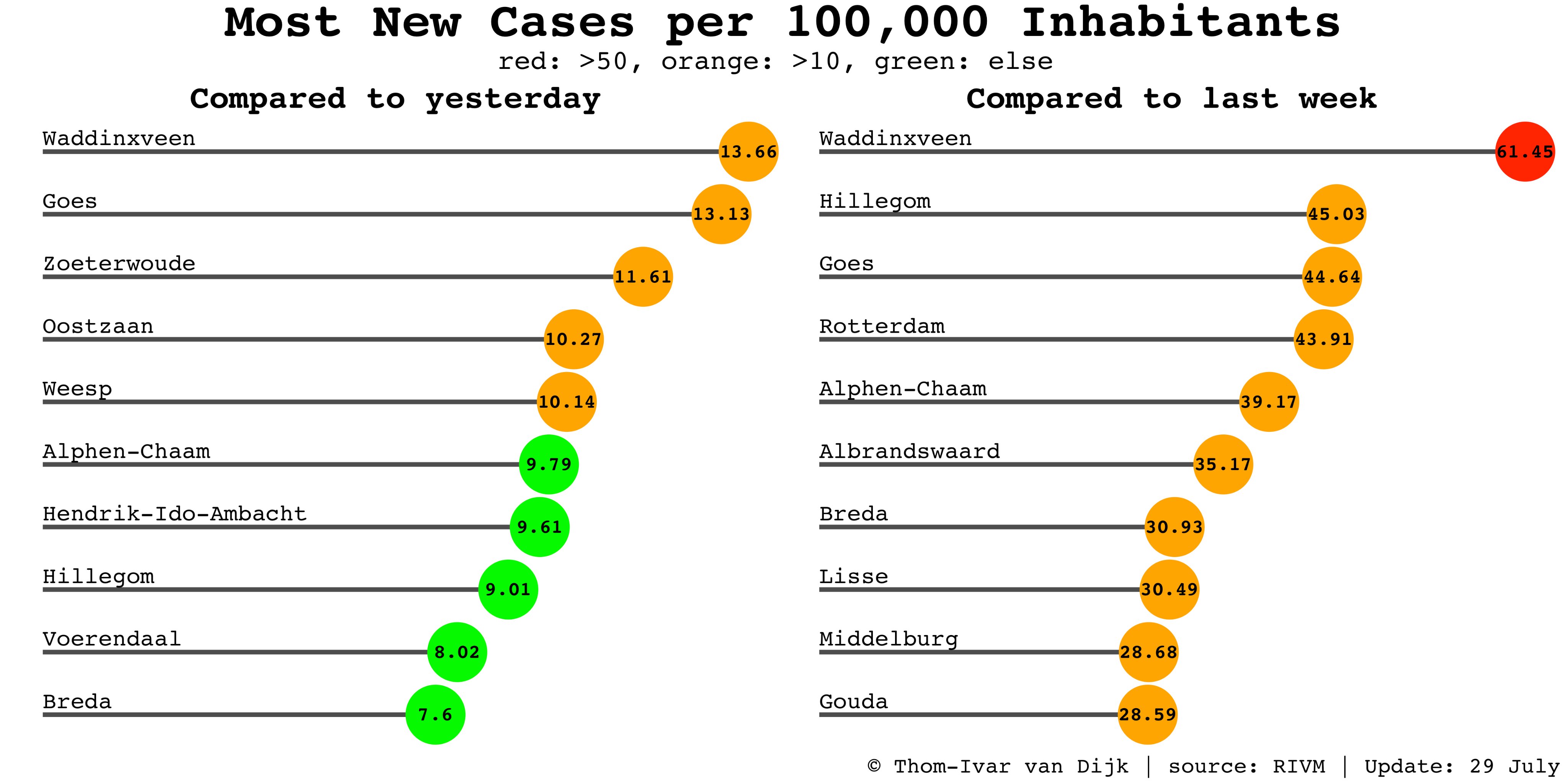 Je ziet de plaatsen rondom Rotterdam nu ook steeds meer positieve gevallen erbij hebben dagelijks.