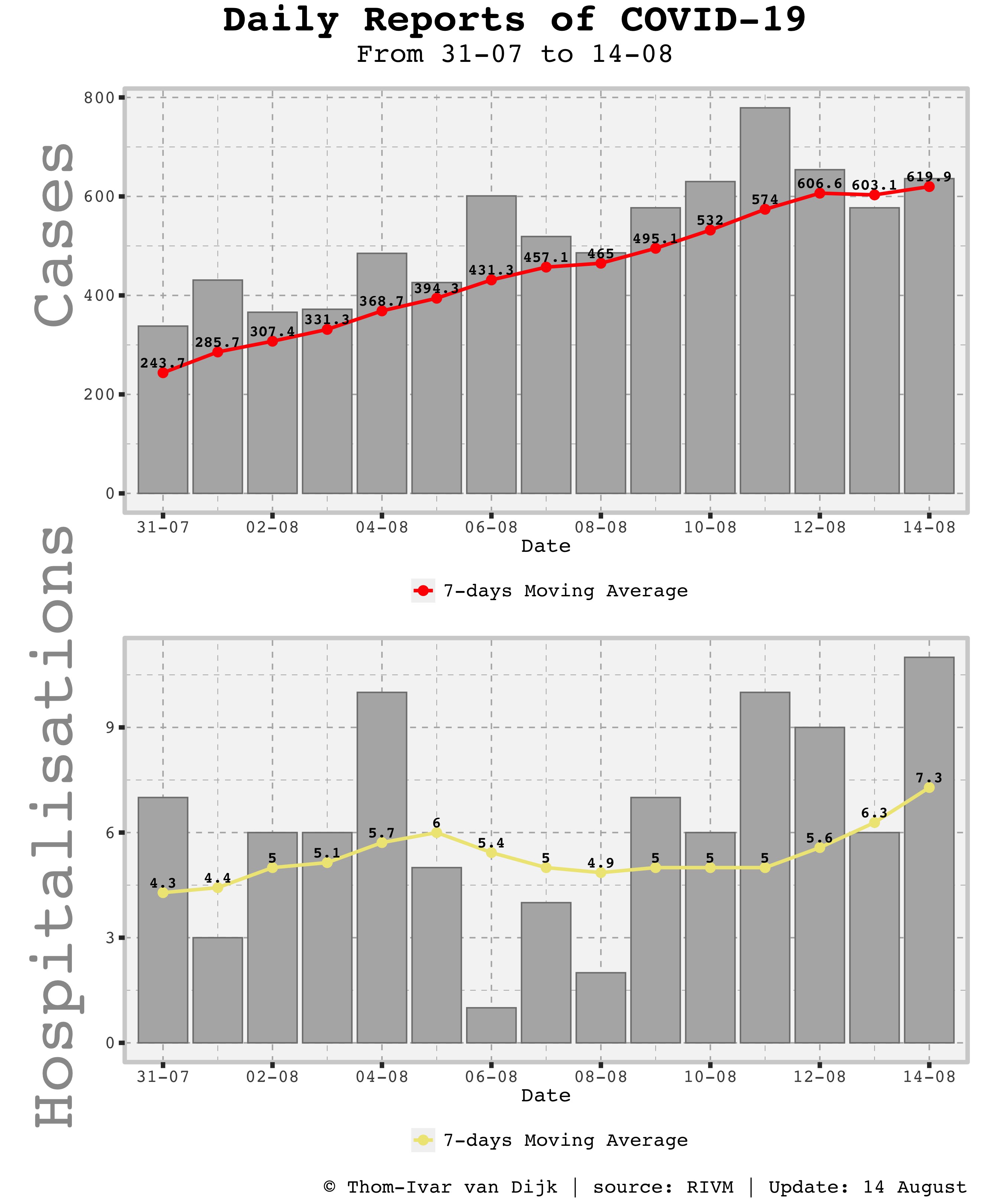 | Status 14-08 Positief getest 61.840, toename: 636 Ziekenhuisopnames 12.020 (19,4% van positief getest), toename: 11 IC-opnames 2.992 (4,8% van positief getest) Overleden 6.167 (10,0% van positief getest), toename: 2 Uitschieters (+10 of meer) +120 Amsterdam (was +69) +74 Rotterdam (was +77) +54 Den haag (was +47) +19 Almere (was +6) +17 Utrecht (was +18) +15 Tilburg (was +4) +10 Schiedam (was +6) | |