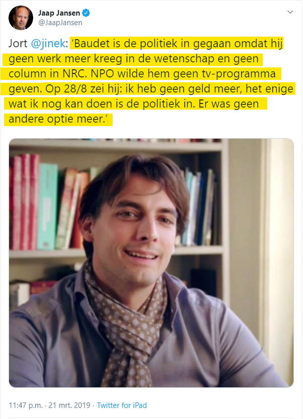 Baudet weet niet goed wanneer hij moet stralen en wanneer hij zich beter stil kan houden. Onervarenheid.quote:Op dinsdag 1 september 2020 13:27 schreef rubbereend het volgende:
