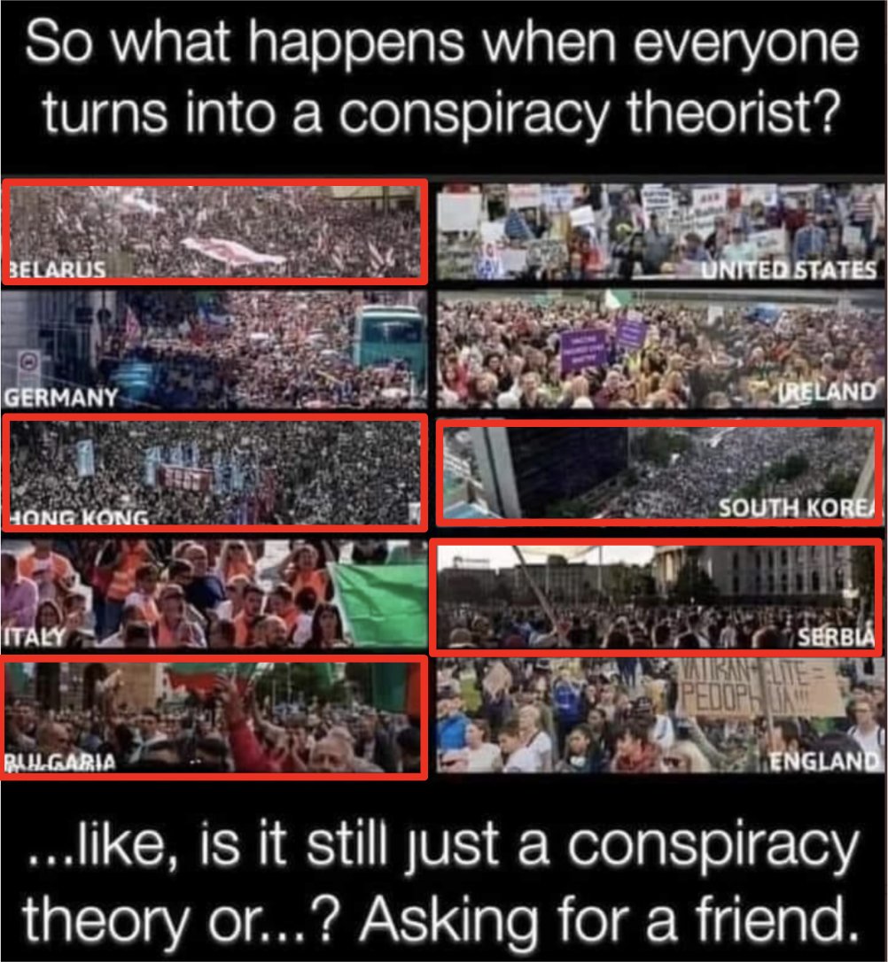 Die foto uit het vorige deel, van Biden als "child predator"? Dat is een bewerkte foto van Biden die zijn kleinzoon troost op een begrafenis. Die bezorgde, maar onverveerde burgers zijn groter tuig dan de leden van een motorbende. Jensen-Streichertjes. | |