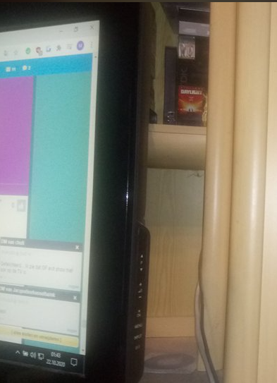 Waarschijnlijk te kort kabeltje tussen laptop en TV