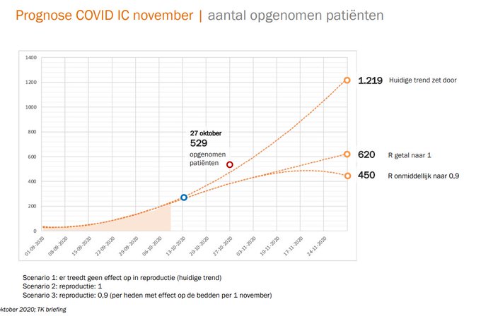 Enige manier dat dit goed zou gaan is dat de R nu al onder de 1 is en dat is dus de gok die ze nu nemen.quote:Op woensdag 28 oktober 2020 10:20 schreef Jor_Dii het volgende: