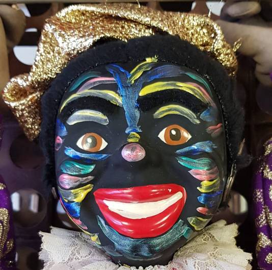 Die Tuimelpiet hangt hier al zeker 50 jaar. We krijgen alleen maar positieve reacties: niemand in de winkel deed er moeilijk over of zag er iets kwetsends in