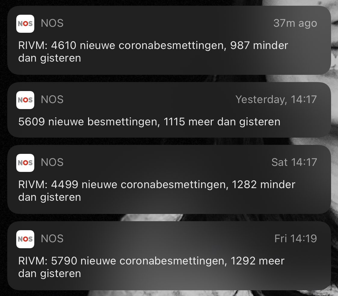 Toen deze gedeeltelijke lockdown werd aangekondigd riepen al diverse mensen hier dat het niet zou helpen. Alleen de horeca dicht en verder gaat alles door. En dat is nu echt te merken. Als ze toen veel meer hadden dichtgegooid was het cijfer stukken gedaald nu en kon het weer open. Dat was in het voorjaar zo en zie je ook in andere landen, zelfs in Belgie. Maar nu blijft het voortkabbelen, inderdaad tot er een vaccin komt. En dat is hier ook een maand later dan in andere landen. En intussen is de horeca naar de klote.