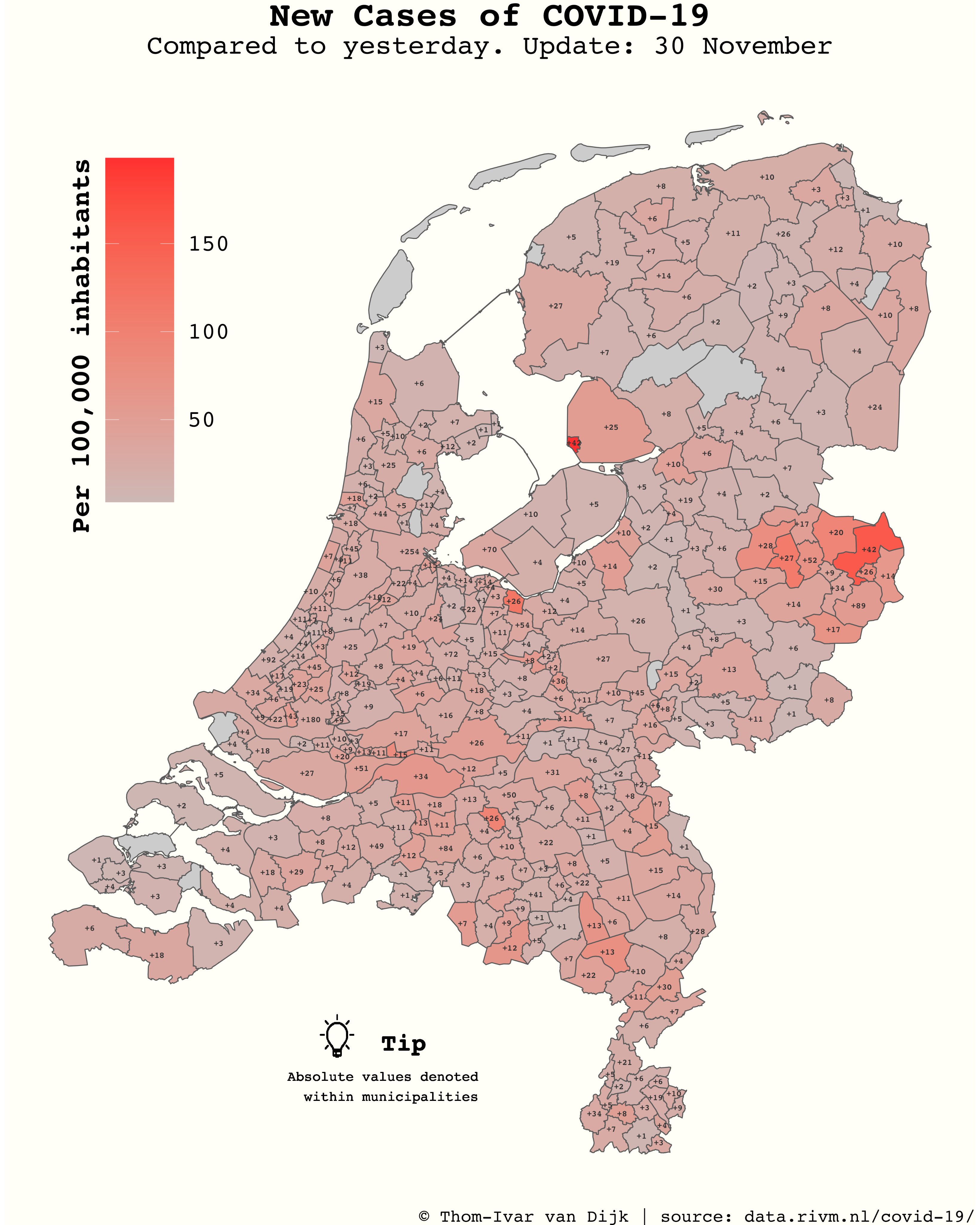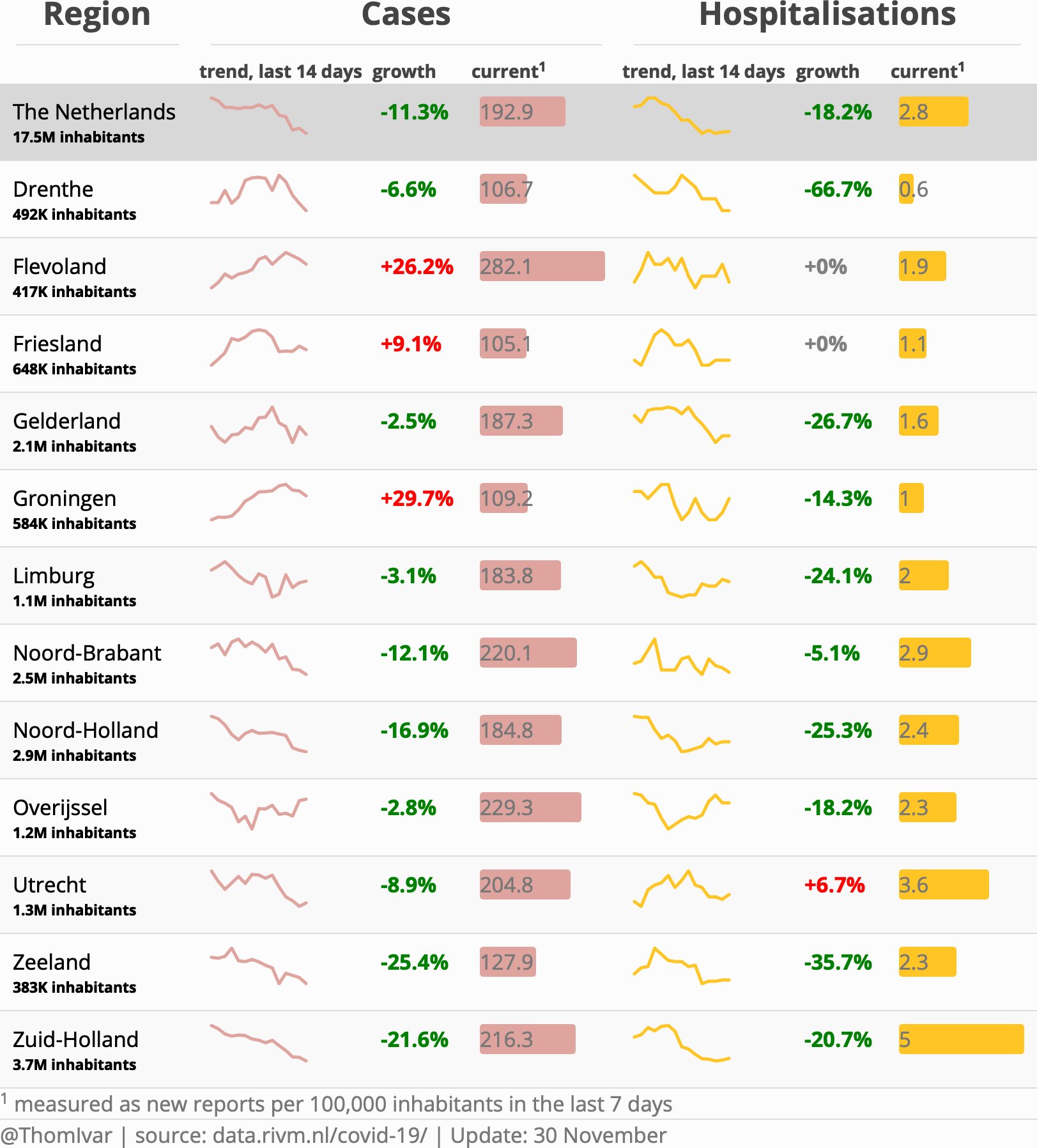Ik vraag mij af... Hoe kan het dat Twente deze tweede golf er de hele tijd uit springt. Je kunt letterlijk zien waar die regio begint en eindigt. Dat is in geen van de andere regio's het geval.