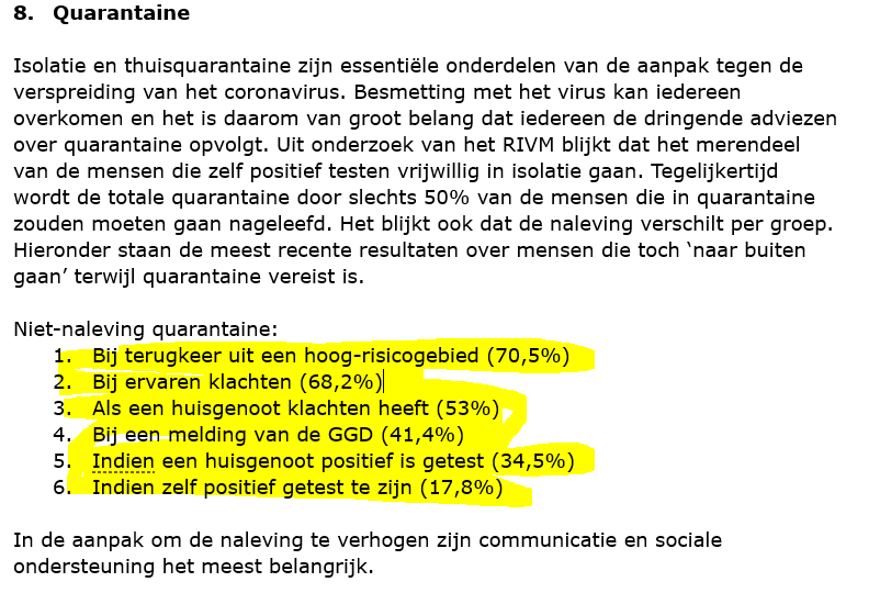 Verbaast me niet, ik weet ook hoe mensen zijn. Die beginnen er met goede moed aan, en na 3-4 dagen blijkt het toch wel onhandig zijn en moeten ze toch nog even dit of dat bij de supermarkt hebben voor die avond, en hebben niet zo gauw iemand die dat even kan regelen.quote:Op woensdag 9 december 2020 14:56 schreef Kyran het volgende: